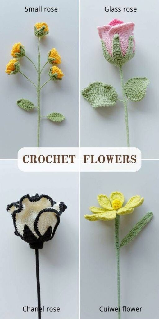 Se você está começando no crochê, as flores são ótimos projetos para praticar. Com pontos básicos, já é possível criar modelos simples e charmosos. Aos poucos, dá para evoluir para flores mais detalhadas e até montar um buquê completo.