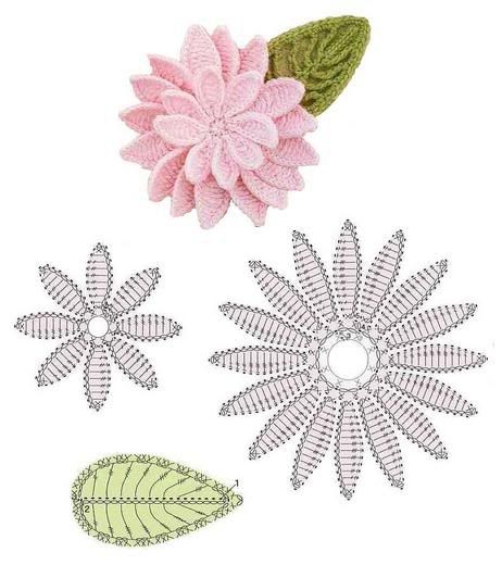 FLOR COM FOLHA DE CROCHÊ COR UNICA PARA APLICAÇÃO