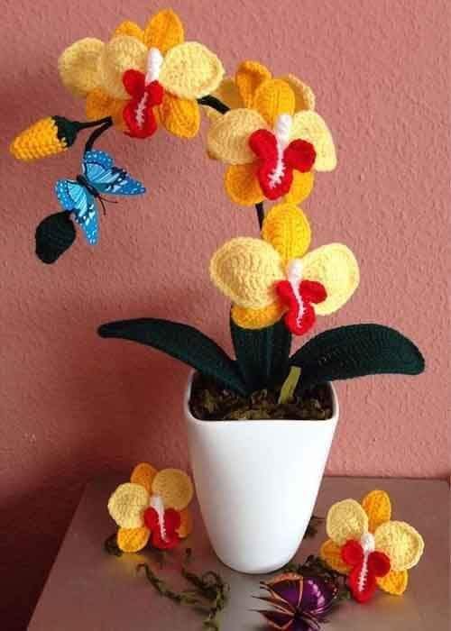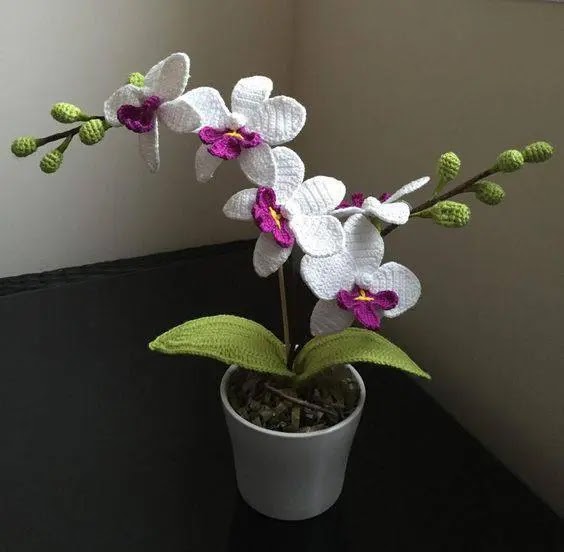 Existem diversos modelos de flores de crochê para arranjos como orquídeas, girassois , margaridas, peonias e até cactos de crochê amigurumi , são também ideais para renovar e dar uma cor extra na decoração de sua casa. Você também pode fazer estas flores com folhas de crochê que com certeza terão maior destaque.