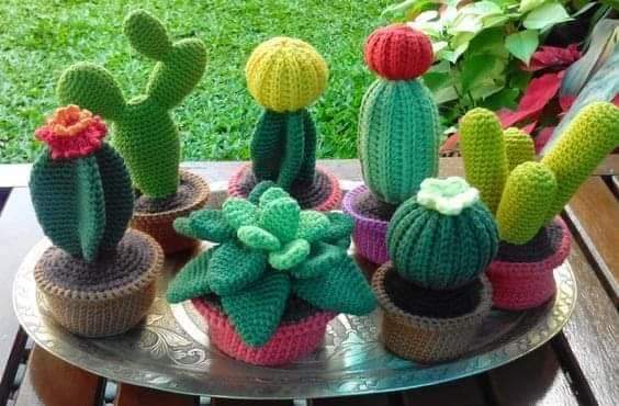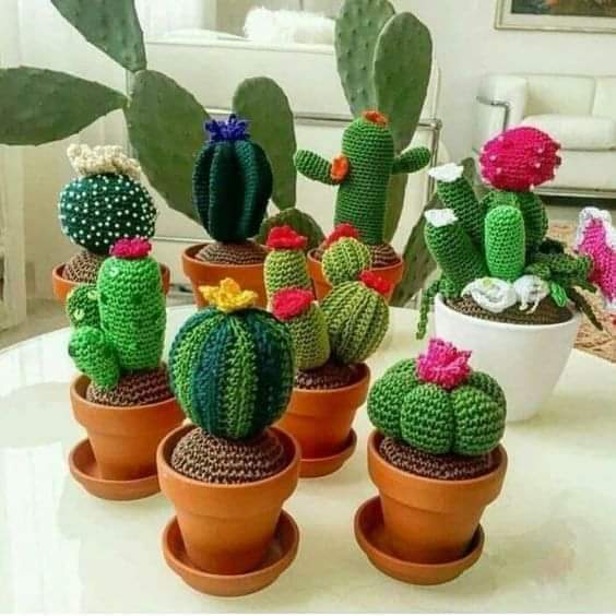 SUCULENTAS E CACTOS EM CROCHÊ VARIAS ESPECIES TAMBEM COM FLOR