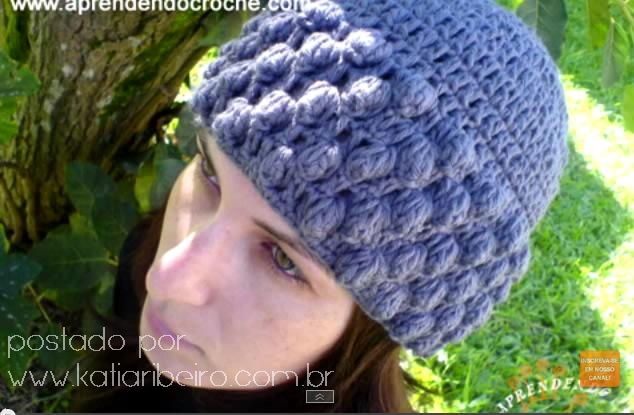 Vejam que lindo esse gorro, é do site Aprendendo Crochê , vejam outros vídeos bem bacanas por lá..