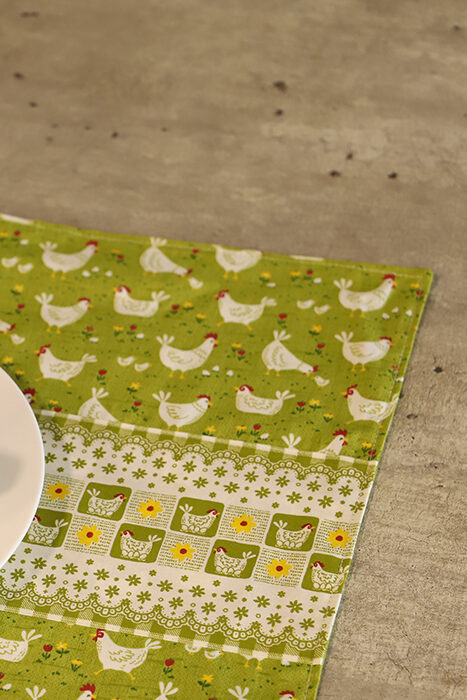 O primeiro passo é dobrar as partes superior e inferior dos barrados. Faça isso com o auxílio de um ferro de passar, garantindo que as dobras estejam bem marcadas. Em seguida, alfinete os barrados sobre o retângulo de tecido estampado, mantendo uma distância de 12 cm da borda. Certifique-se de que os barrados estejam bem posicionados antes de proceder.