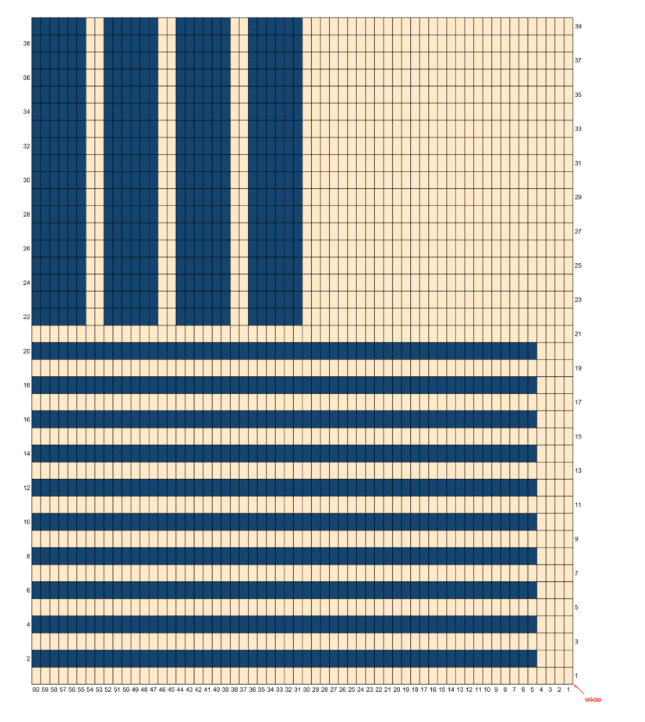 O que faz o desenho surgir são as trocas de cor realizadas ao longo do trabalho. A troca para a nova cor deve ser feita na última laçada do último ponto da cor antiga. Ou seja, a última laçada deve ser feita já com o fio da cor nova.