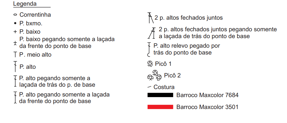 02 Novelos de Barroco Maxcolor 4/6 (400g) – Cor: 7684 (Porcelana) 01 Novelo de Barroco Maxcolor 4/6 (400g) – Cor: 3501 (Malagueta) Agulha para Crochê – 4,00 mm Tamanho: Tapete da pia: 79 x 57 cm Tapete do vaso: 64 x 56 cm Tampa do vaso: 61 x 52 cm