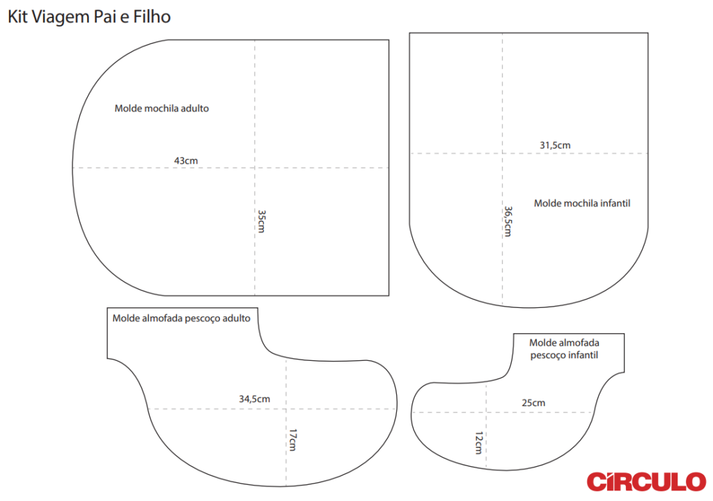 A execução das peças segue um processo específico de corte e costura, adaptável para mochilas adultas e infantis: