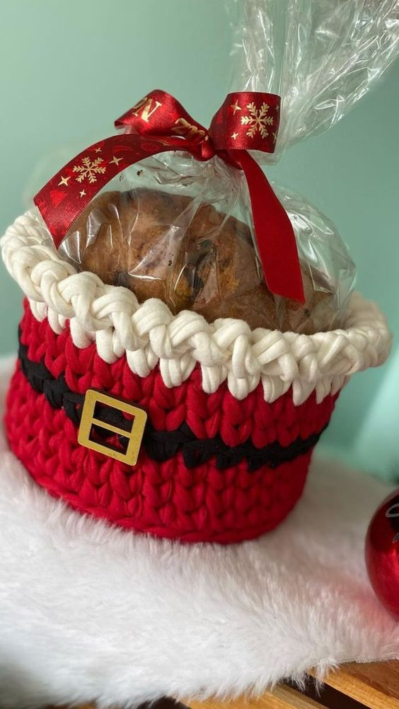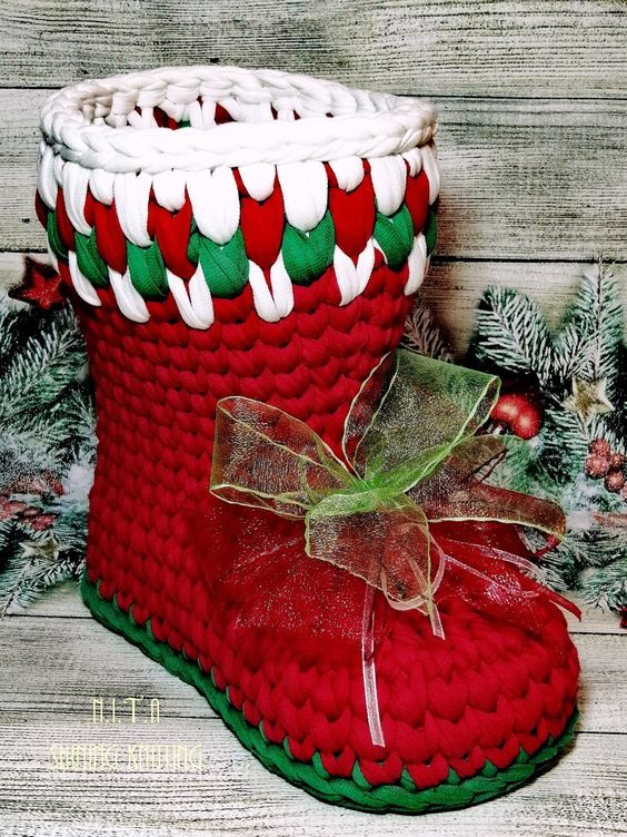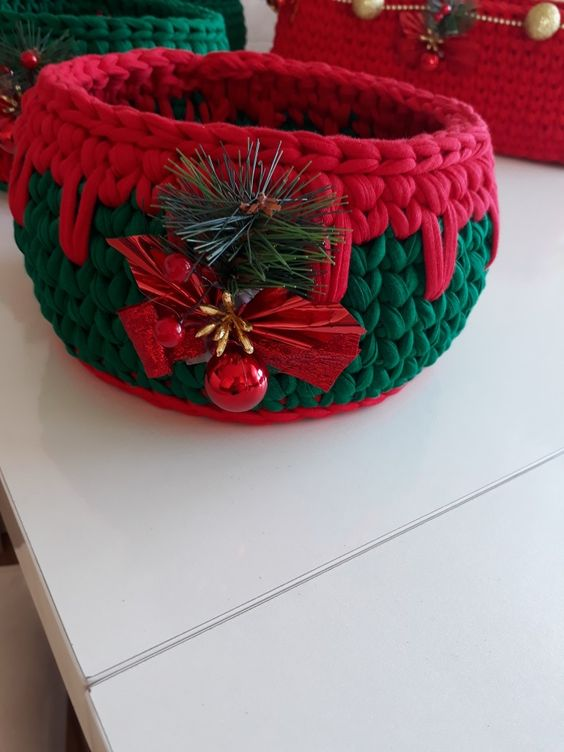 Aprenda como fazer um cachepô de crochê com fio de malha para o Natal
