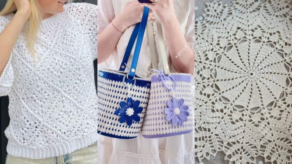 - Acessórios de Moda: Crie bolsas, chapéus, lenços e joias de crochê que se destacam pela originalidade e beleza.
