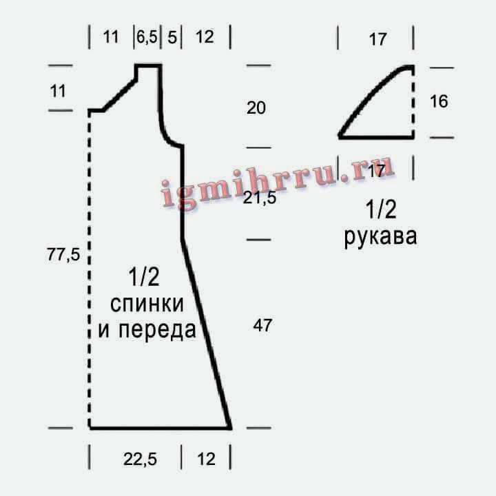 - Tricote as partes da peça (frente, costas e mangas) seguindo o gráfico.