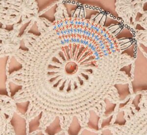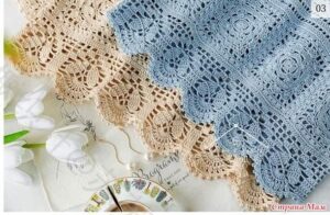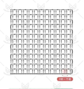 Pontos utilizados: Correntinha (corr.). Pnto baixíssimo (p. bxmo.): Introduza a ag., laç., puxe o p. e passe diretamente no p. da ag.. Pnto baixo (p. b.): introduza a ag. laç., puxe o p. e com outra laç., rem. todos os p.. Ponto alto (p. a.): laç., introduza a ag., laç., puxe o p. laç., rem., 2 p. e com outra laç., rem. todos os p.. Pont alto triplo (p. a. triplo): 3 laç., introduza a ag., * laç., puxe o p. laç., rem., 2 p.* (3 v.) e com outra laç., rem. todos os p.. Crochê file: siga o gráfico. Babado: siga o gráfico. Motivo: siga o gráfico. Meio motivo: siga o gráfico. Acabamento: siga o gráfico. Esquema de montagem: siga o gráfico.