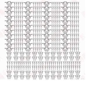 Frente e costas: São trabalhas juntas. Comece pelo crochê file. Faça uma corr. de 80 p. mais 3 corr. para virar e trabalhe o crochê file, seguindo o gráfico. Terminado o gráfico rem. e deixe à espera. Faça 2 partes iguais. Motivos – Faça uma corr. de 6 p. feche em círculo e trabalhe o motivo seguindo o gráfico. Terminado o gráfico rem.. Faça 55 motivos iguais unindo-os entre si e no crochê file durante a última carr. seguindo o esquema de montagem. Meio motivos – Faça uma corr. de 2 p. mais 3 corr. para virar e trabalhe o meio motivo seguindo o gráfico. Terminado o gráfico rem.. Faça 8 meios motivos iguais unindo-os aos motivos, durante a última carr. seguindo o esquema de montagem.