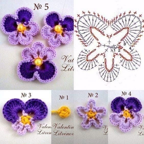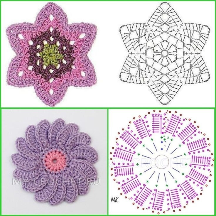 Gráficos e Inspirações de Motivos de Crochê Floral para Aplicação: