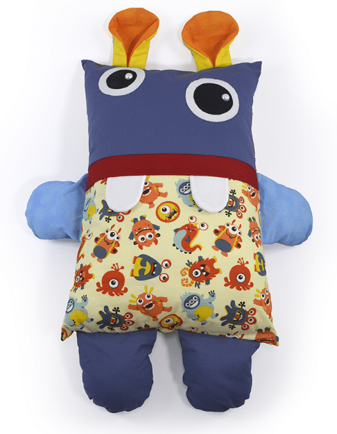 O design do monstrinho em patchwork é uma mistura única de cores vibrantes e tecidos texturizados, criando um personagem que é ao mesmo tempo amigável e encantador. Cada detalhe é costurado com carinho, refletindo a qualidade artesanal que torna esta naninha especial.