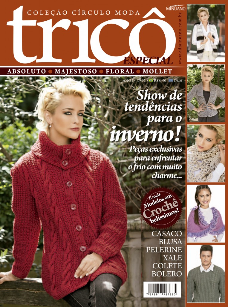 Revista Moda Tricô Especial 2012: Já está disponível nas bancas e nos armarinhos de todo o país a Revista Círculo Moda Tricô Especial nº02. Nela estão as últimas tendências para o inverno e você aprende a confeccionar lindas peças femininas e masculinas para enfrentar o frio com classe e elegância!