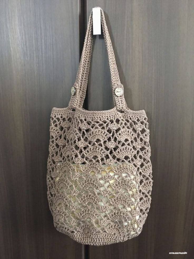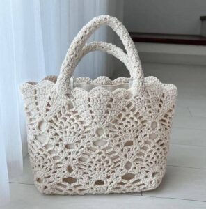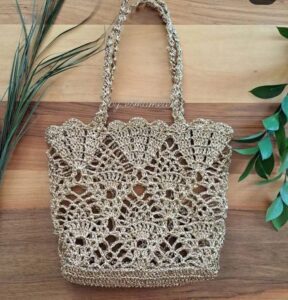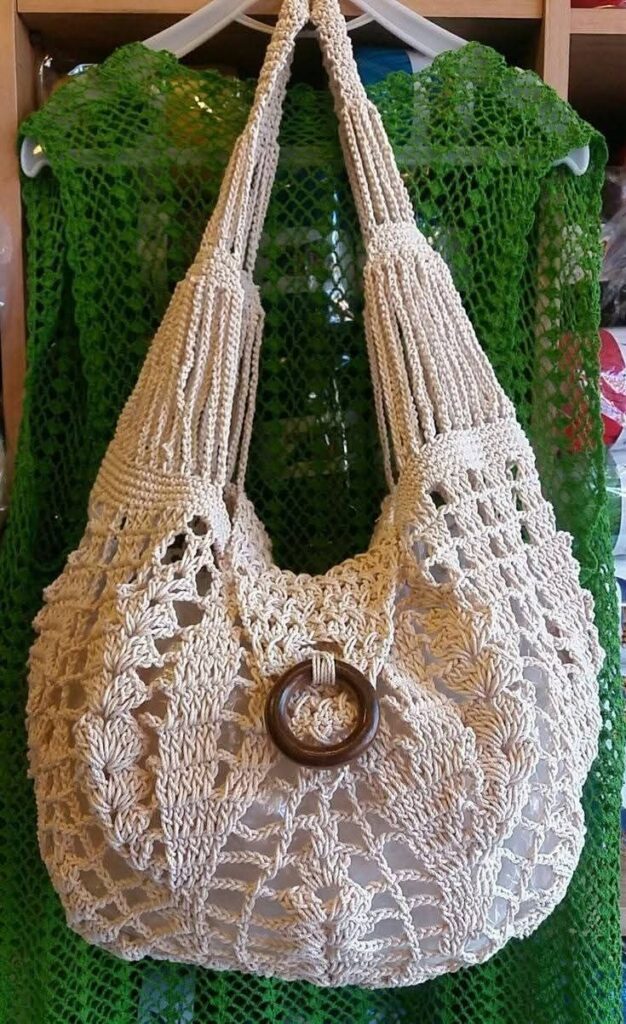 - Bolsa de Crochê Tote As bolsas tote de crochê são ideais para o dia a dia, sendo grandes e espaçosas o suficiente para carregar itens essenciais, como carteira, celular, maquiagem e até mesmo um livro. Elas são populares em modelos mais descontraídos, frequentemente feitas com fios naturais como o algodão e o linho. As totes de crochê oferecem um toque rústico e descomplicado ao visual, sendo uma ótima opção para looks casuais, de praia ou para passeios no parque.
