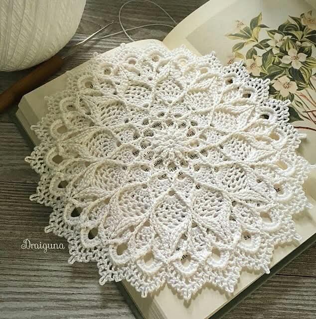 - Pontos Utilizados: Ponto leque, ponto abacaxi e combinações de pontos rendados.