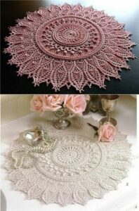 Os centros de mesa redondos em crochê são clássicos e podem ser feitos em diversos tamanhos e padrões.