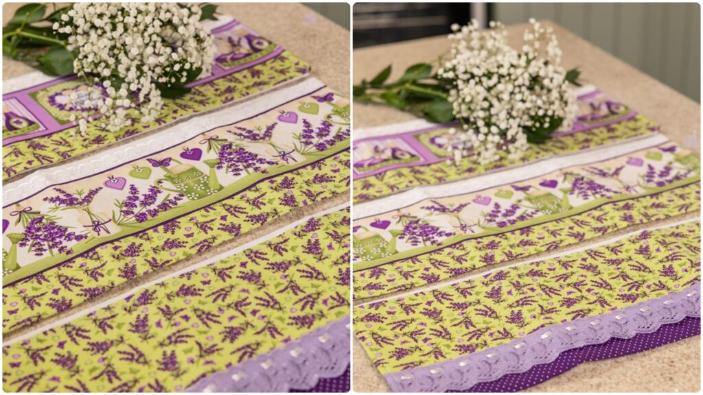 O processo de montagem do pano de copa pode variar de acordo com a preferência do artesão e o modelo desejado. Para os panos de copa com a coleção Lavanda, diferentes configurações de estampas criam variedade no conjunto. Veja abaixo o passo a passo para montar cada modelo: