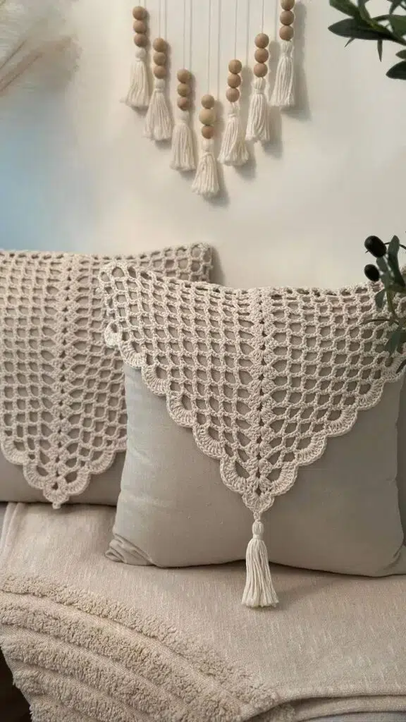 - Mix perfeito: almofadas de crochê e tecido que renovam a decoração em minutos
