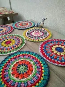 - Tapetes de crochê: aconchegantes e funcionais, podem ser usados em qualquer cômodo.