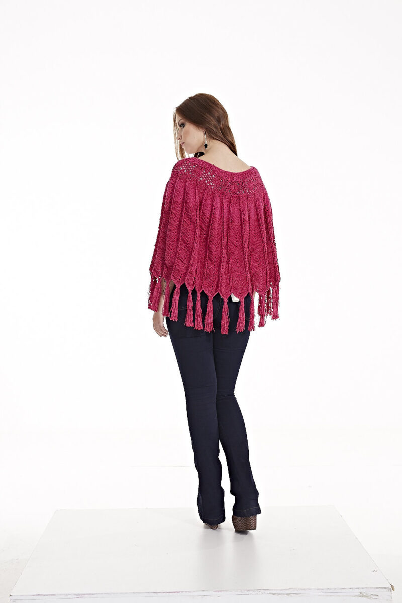 - Poncho com franjas longas – moderno e estiloso, traz movimento e combina com produções boho.