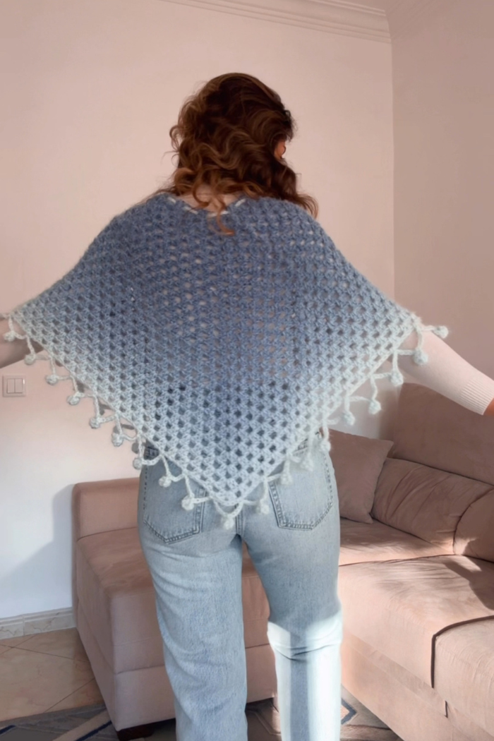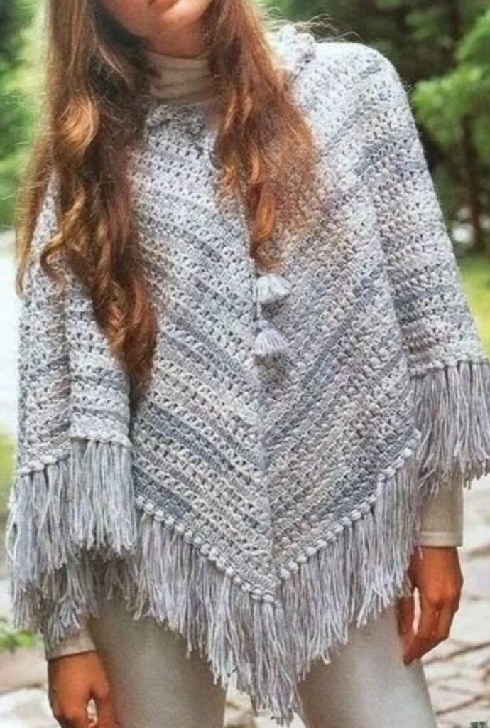 - Poncho minimalista – feito com pontos simples e cores neutras, ideal para quem prefere um visual discreto.