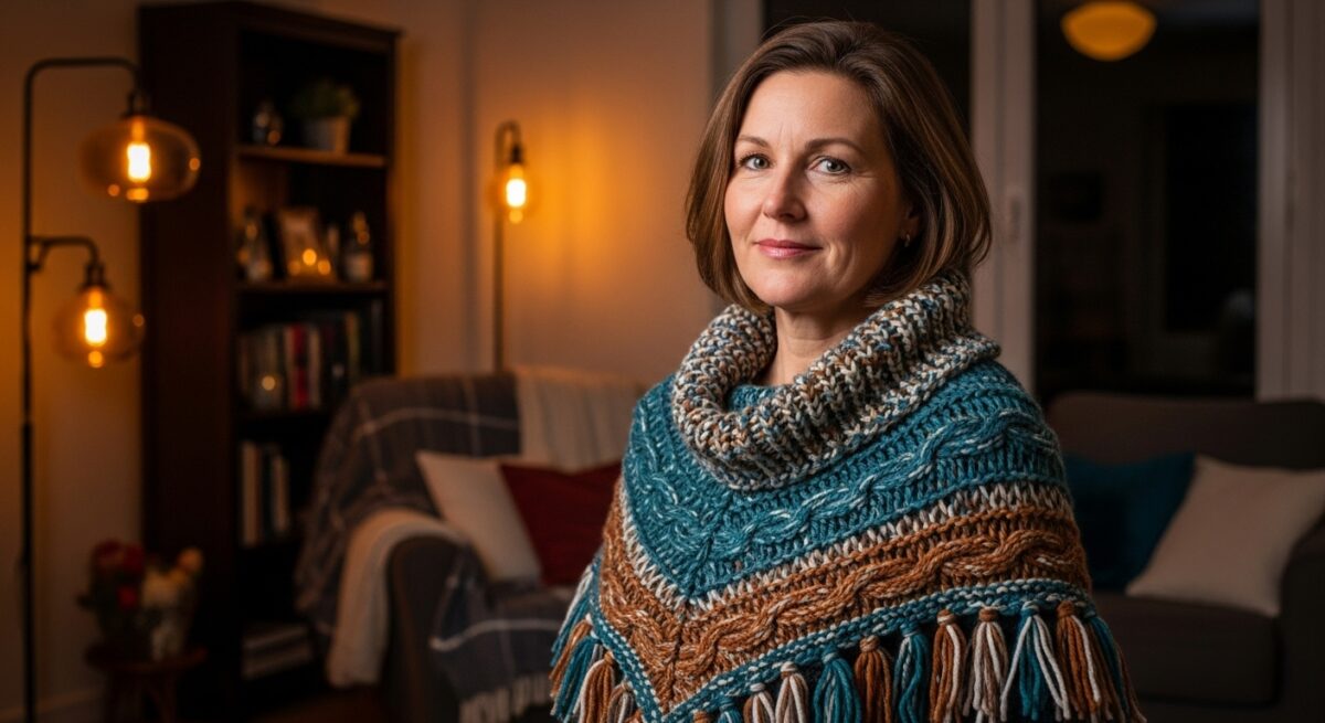 - Fio acrílico: ideal para ponchos de inverno, com toque aconchegante.
