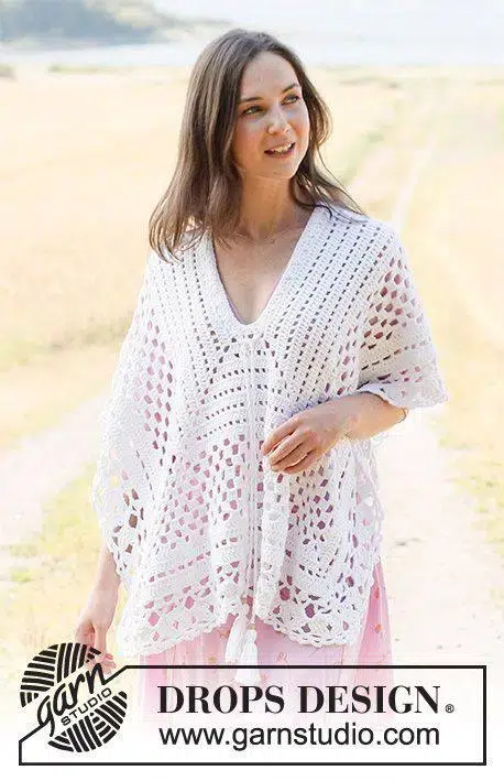 - Poncho triangular clássico: elegante e ideal para sobrepor a vestidos ou blusas justas.