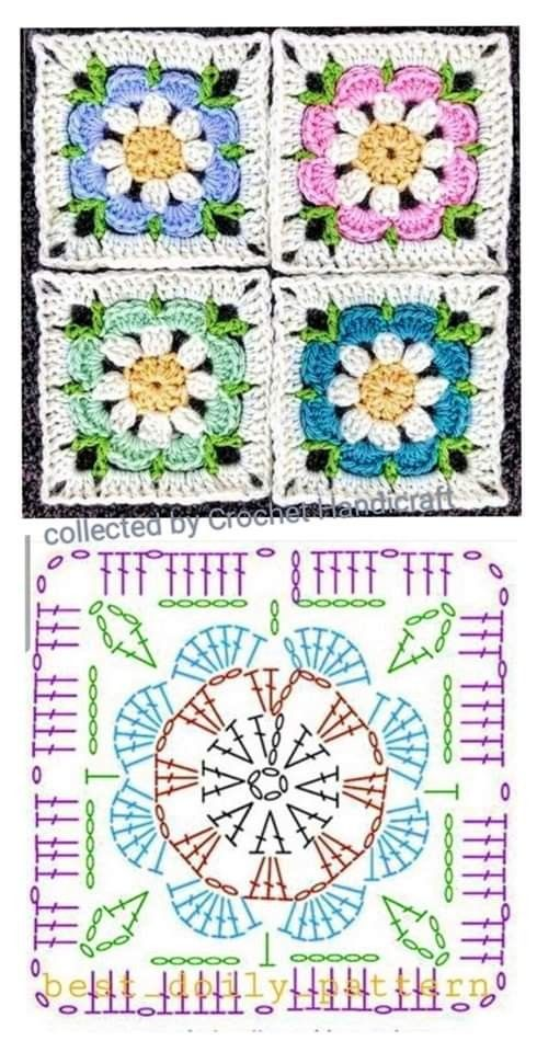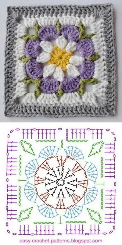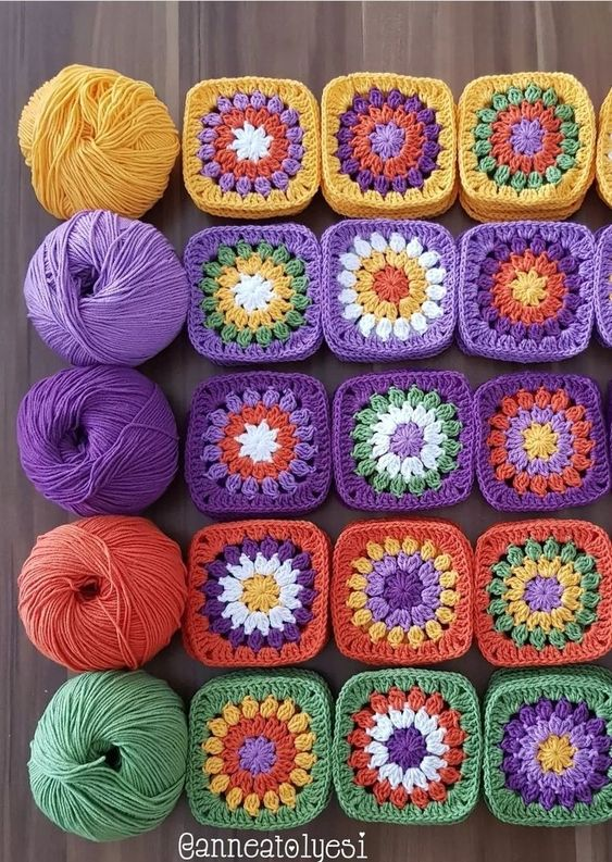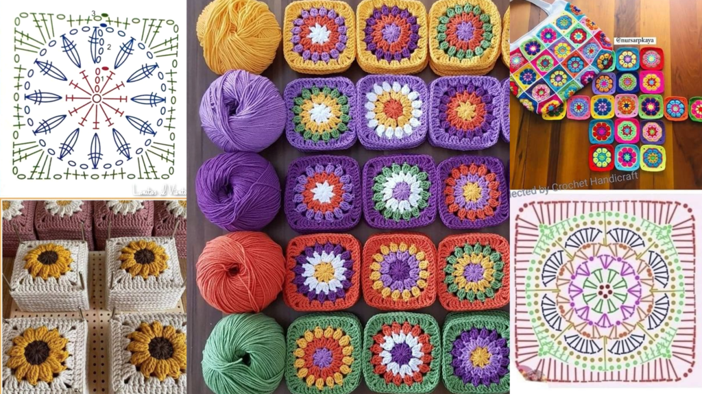 - Quadradinho Floral: Incorporam motivos de flores no centro, adicionando uma beleza especial. São ótimos para decorações como almofadas e mantas.
