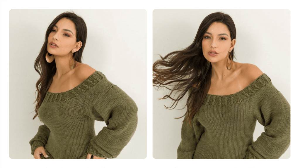 - Camadas: Use a blusa de tricô Luar como uma peça de destaque em looks de camadas. Combine-a com suéteres, cardigãs e jaquetas para criar visuais interessantes e aquecidos.