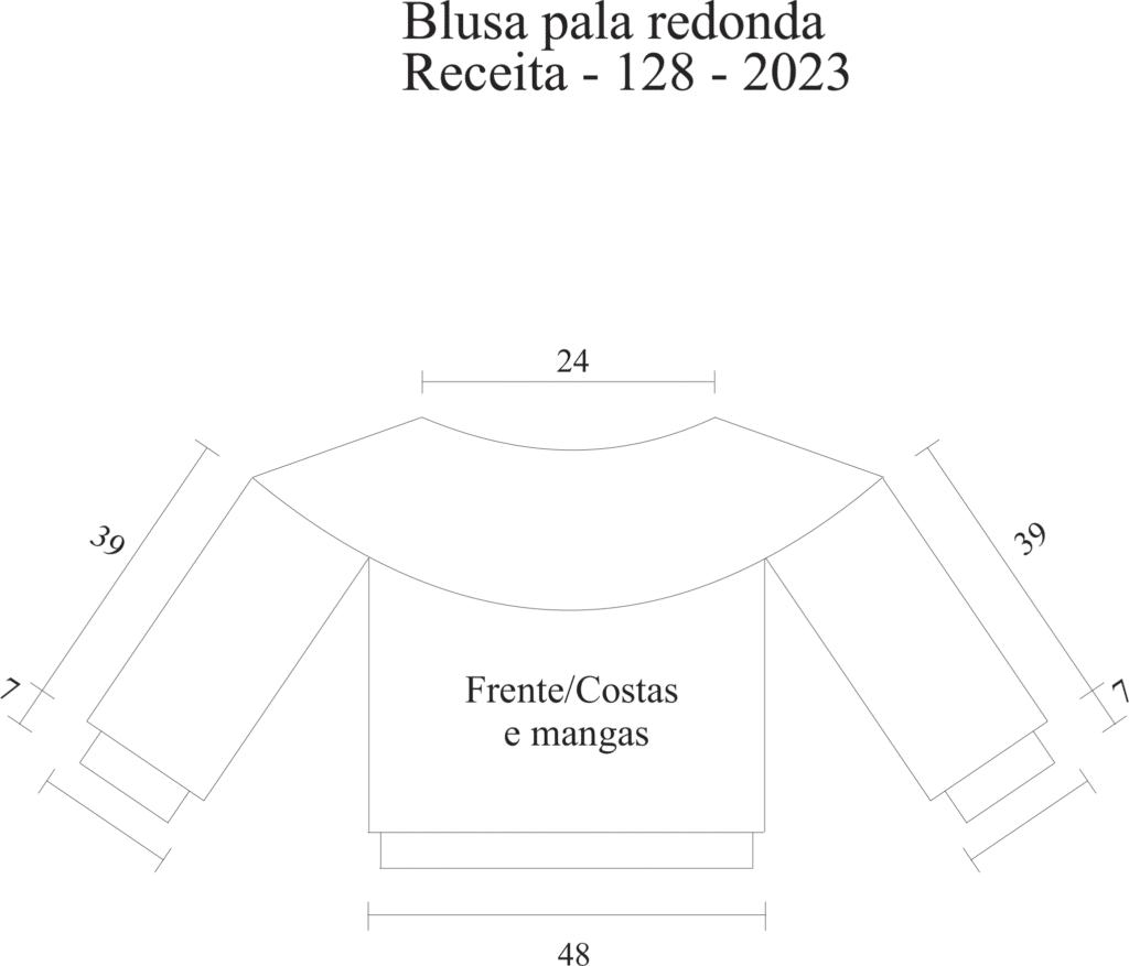 Execução – A peça tric. com a ag. circular é bom marcar sempre o início da carr. para não ter dificuldade na execução dos pontos. Frente/Costas e mangas – São trabalhas juntas. Monte 114 p. nas ag. nº 3,0mm e tric. com a ag. circular em barra 3/3. A 3 cm do início do trabalho, tric. do seguinte modo: *1 carr. em avesso do p. meia, 1 carr. em p. meia, 1 carr. em avesso do p. meia, 7 carr. em p. meia* (7 v.), 1 carr. em avesso do p. meia, 1 carr. em meia, 1 carr. em avesso do p. meia (final da pala). Ao mesmo tempo depois das 3 carr. após a barra, comece os aum. da pala, aum. a cada 18 carr.: 58 p. (4 v.), faça os aum. distribuídos durante toda a carr.. Terminado os aum. ficam 346 p. em trabalho. Terminada as carr. da pala separe frente e costas e mangas do seguinte modo: 97 p. para as costas, 76 p. para uma manga, 97 p. para a frente e 76 p. para a outra manga. Frente e costas – Trabalhe juntas. Retome os p. das costas, monte 6 p. para a cava, retome os p. da frente, monte 6 p. para outra cava. Trabalhe em círculo e em p. meia. Distribua 18 aum. durante a 1ª carr. (ficam 224 p.). A 20 cm do início da frente e costas tric. em barra 3/3 distribua 14 dim. na 1ª carr. em barra 3/3. A 26 cm do início da frente e costas rem.. Mangas – Monte 6 p. (cava) na ag. circular, em seguida retome os p. de uma manga, e tric. em círculo e em p. meia. A 39 cm do início da manga tric. em barra 3/3, distribua 13 dim. na 1ª carr. em barra 3/3. A 46 cm do início da manga, rem.. Faça a outra manga igual.