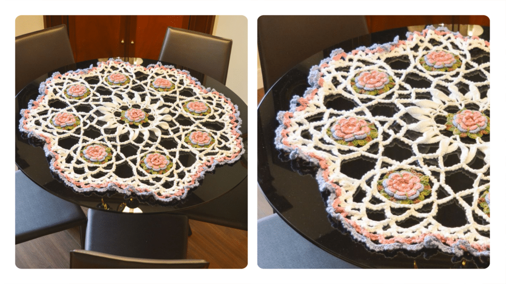 - Presente Artesanal: Um centro de mesa de crochê Encantado é um presente maravilhoso e significativo para amigos e familiares, especialmente em ocasiões como aniversários, chás de panela e inaugurações de casa.