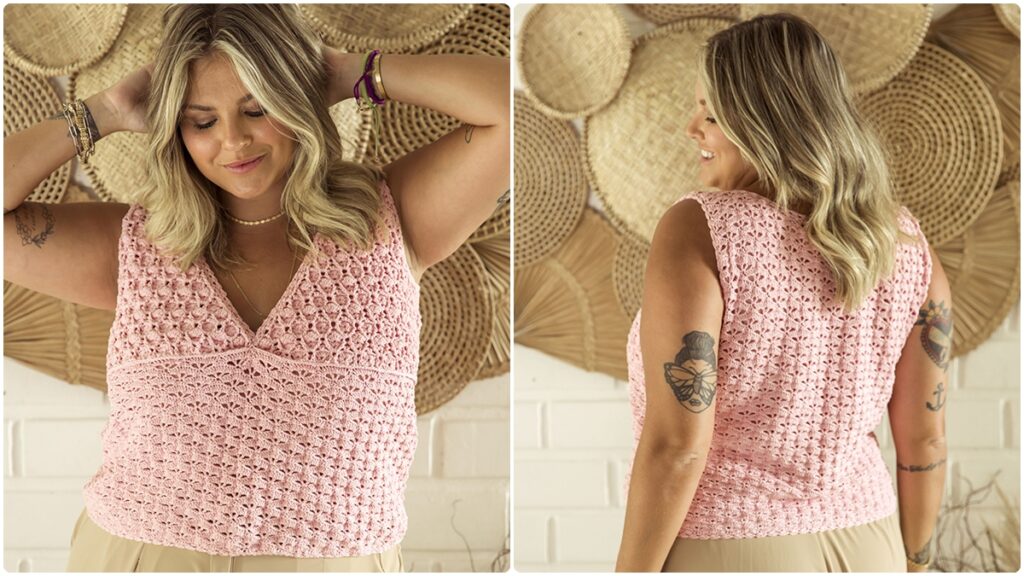 A regata de crochê Jess se destaca como uma peça leve e versátil, indicada para dias mais quentes e capaz de compor diferentes estilos. Produzida com nove novelos do fio Verano na tonalidade rosa 3526 e utilizando a agulha de crochê Círculo de 2,5 mm, o trabalho explora texturas e detalhes únicos, valorizando os pontos tradicionais do crochê. Para quem aprecia o universo das peças feitas à mão, confeccionar essa regata representa um exercício cuidadoso de técnica e criatividade.