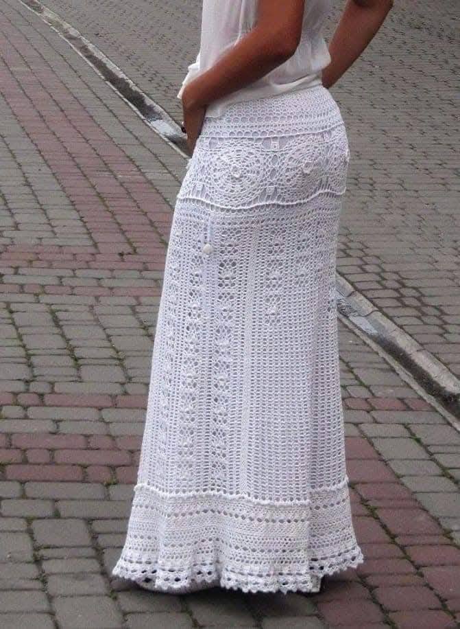 Nos meses mais quentes, uma saia longa de crochê junto com um top leve assegura um visual refrescante. Já no inverno, usar uma saia de crochê com uma trama mais densa, combinada a botas e meia-calça, proporciona conforto térmico sem perder o estilo.