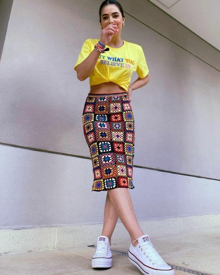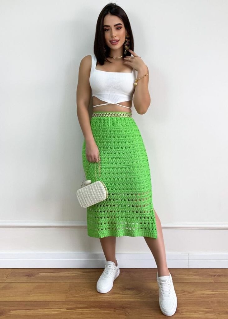 As saias de crochê são extremamente versáteis e podem compor desde looks despojados até produções elegantes. Veja algumas ideias de combinação: