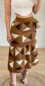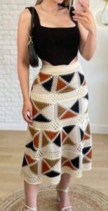 - Look Casual: Combine uma saia midi ou curta de crochê com uma camiseta básica e tênis para um look confortável e estiloso para o dia a dia.
