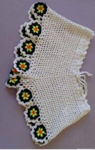 - Se quiser, passe um elástico fino ou uma cordinha de crochê no cós para melhor ajuste.