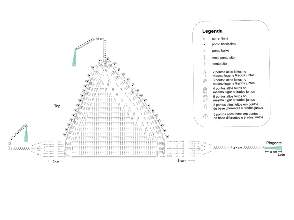 - 2ª e 3ª Carreiras: Comece com 3 correntes e faça um ponto alto em cada ponto alto da carreira anterior.
