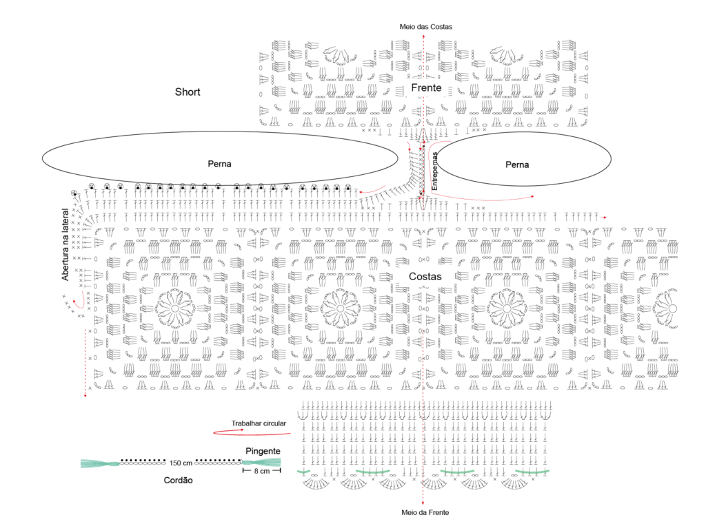 Gráficos do Conjunto de Shorts e Top de Crochê Passione: