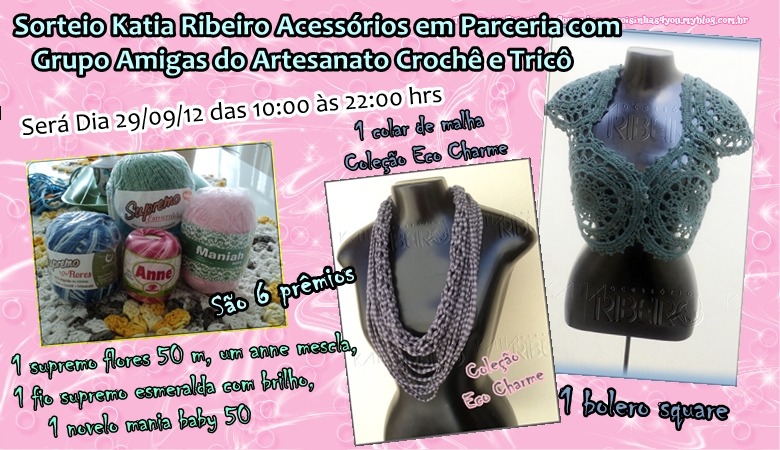 Estou promovendo um outro sorteio bem legal onde presentearei as amigas com : um bolero em crochê, um colar de malha, um novelo de barbante supremo flores (Enovelar) , 1 anne mesclada, 1 supremo esmeralda com brilho ( Enovelar) , um maniah baby ( Estilotex ), gostaram?