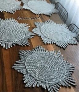 - Sustentabilidade: Os sousplats de crochê geralmente são feitos de materiais naturais, como o algodão, que é biodegradável e eco-friendly. Isso os torna uma escolha sustentável em comparação com os modelos de plástico ou outros materiais sintéticos.