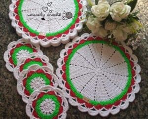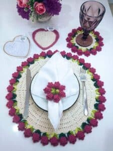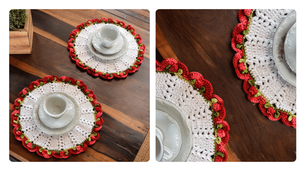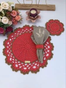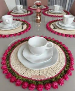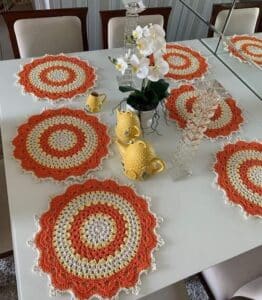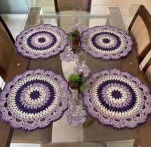- Durabilidade: Com os devidos cuidados, os sousplats de crochê podem durar muitos anos, resistindo bem ao uso diário e às lavagens.
