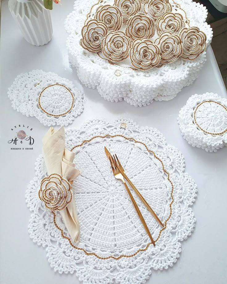 Entre os detalhes que marcam um sousplat de crochê de luxo, destacam-se: