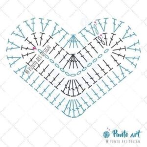 - Dentro do círculo: 3 pontos altos, 3 meios pontos altos, 1 ponto baixo (isso cria a curva do coração).
