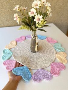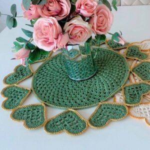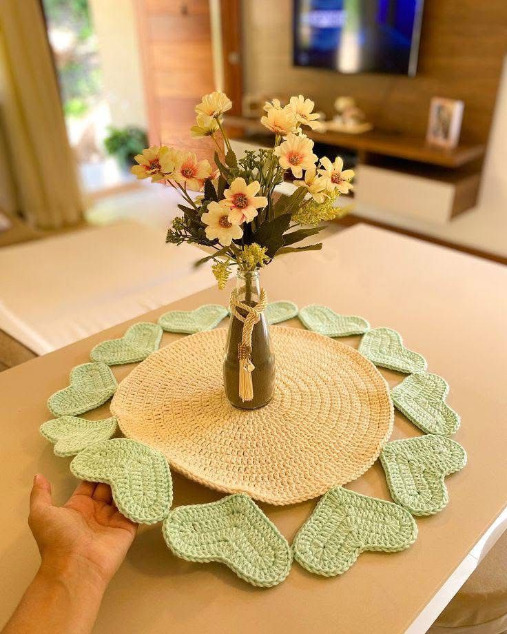 Por que apostar em sousplats e tapetes de crochê com borda de coração?
