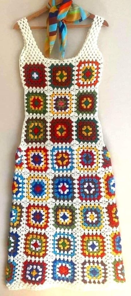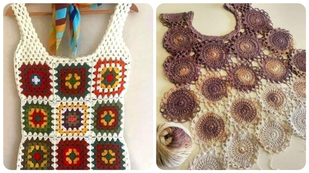 - Roupas e Moda: Embora menos comuns, os squares de crochê também podem ser incorporados em roupas e acessórios de moda, como tops, saias, coletes e até mesmo chapéus. Essas peças feitas à mão agregam um charme artesanal e único ao guarda-roupa.