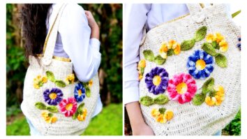 no NoticiasBolsa de crochê com barbante e flores aplicadas
