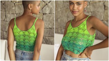1.9k Views no CROCHÊ, Cropped Cropped de crochê jeans militar apresenta modelito lindo e charmoso! Veja Mais
