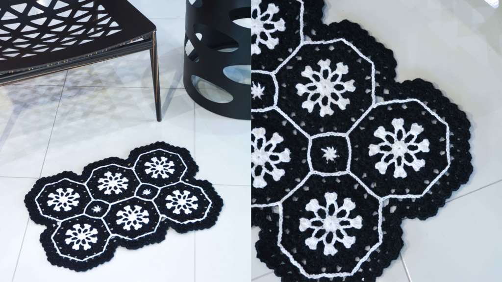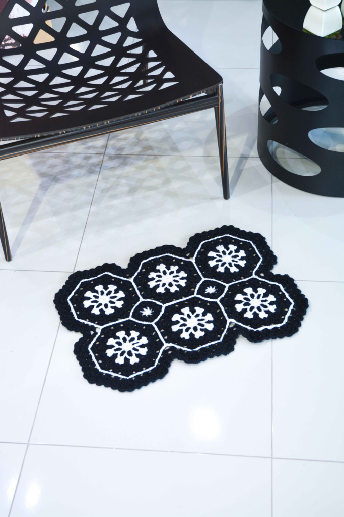 Sua versatilidade permite que o tapete seja combinado com diferentes estilos de decoração, desde o moderno ao clássico. Independentemente do ambiente, o tapete de crochê “Diamante” contribui para uma sensação de coesão e harmonia no espaço.