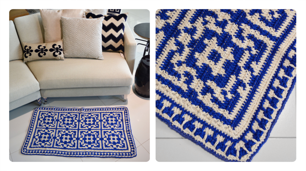 Apesar de sua inspiração específica, o tapete em crochê Azulejo Português é versátil na decoração. Ele combina bem com uma variedade de estilos, desde o rústico ao moderno, adicionando um toque de tradição e personalidade a qualquer ambiente. Além disso, sua versatilidade de uso permite que seja colocado em diferentes cômodos da casa, como a sala de estar, o quarto ou até mesmo a cozinha.