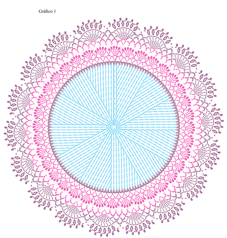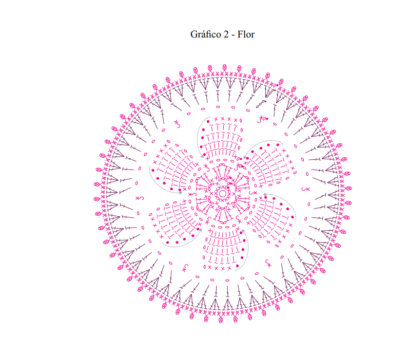Amostra: um círculo de 10 cm de diâmetro, seguindo gráfico 1, com fio Barroco Decore Luxo e Agulha 5,0 mm = 60 pts. x 2 carr.